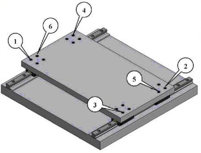 (4)按照圖示的順序把移動平臺安裝到導軌的滑塊上,推動平臺看是否順暢有無卡滯現(xiàn)象,如果有需要對導軌滑塊的螺釘進行調整直至順暢滑行。
