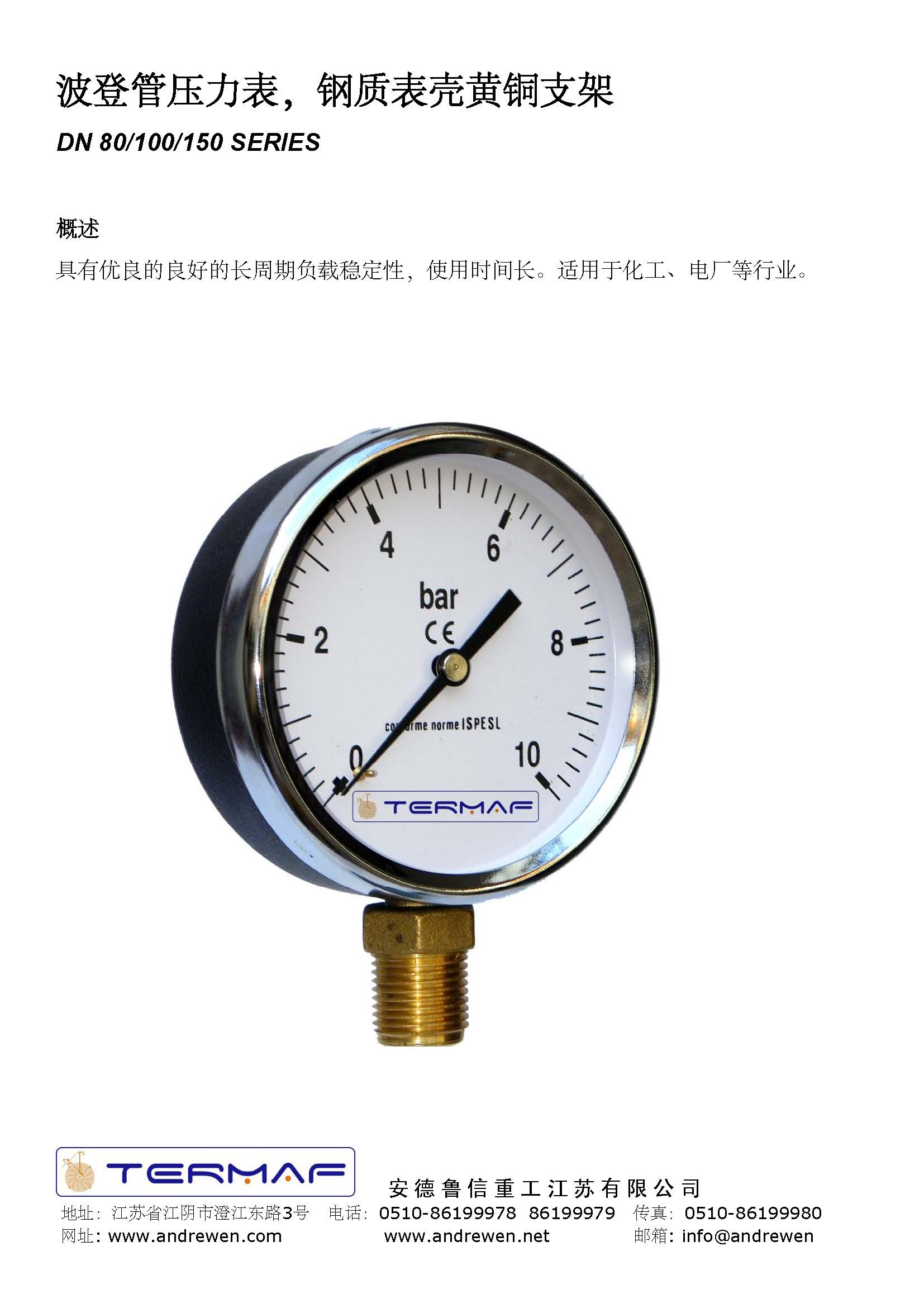 波登管壓力表,鋼質(zhì)表殼黃銅支架-意大利TERMAF