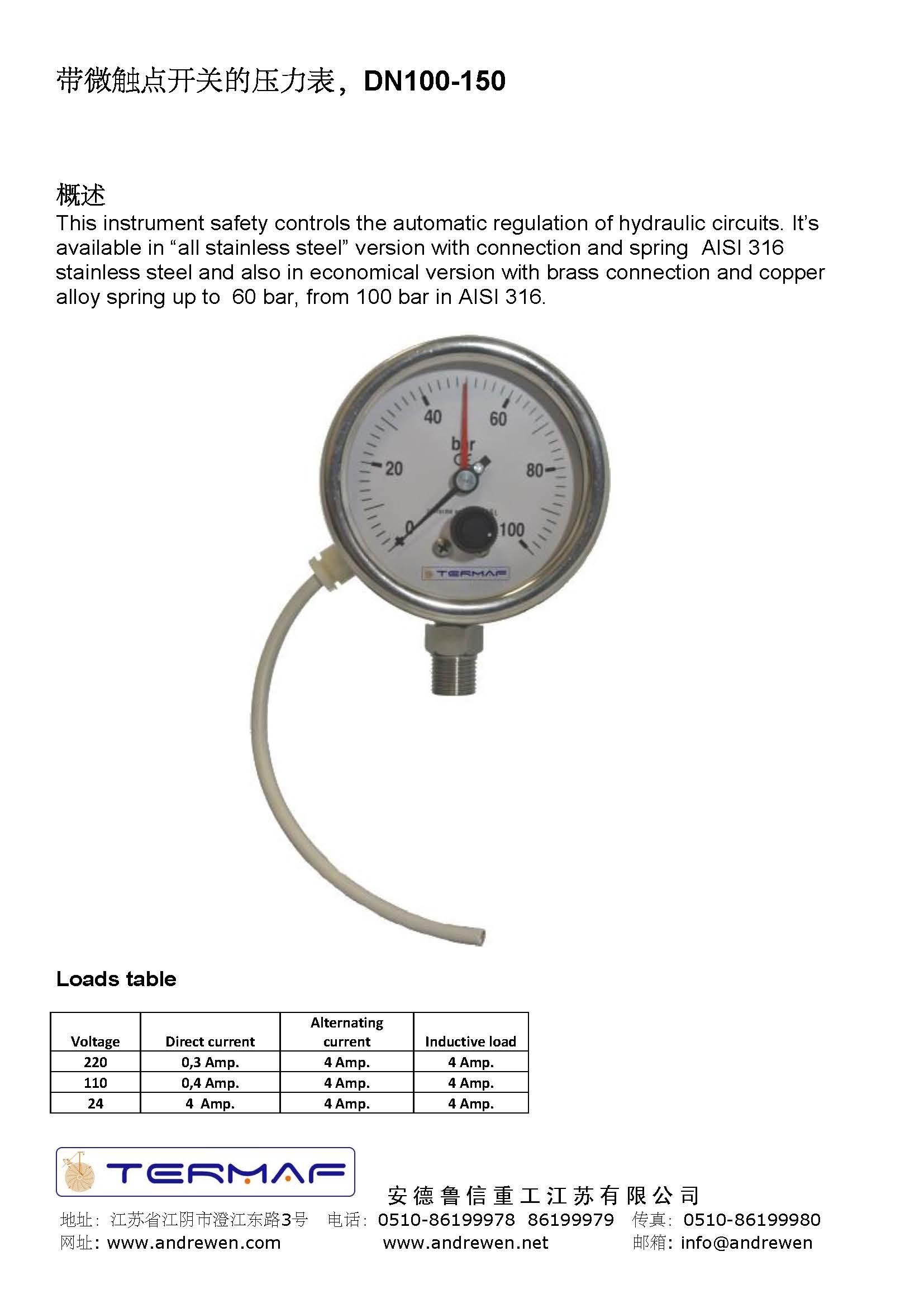 帶微觸點開關(guān)的壓力表,DN100-150-意大利TERMAF
