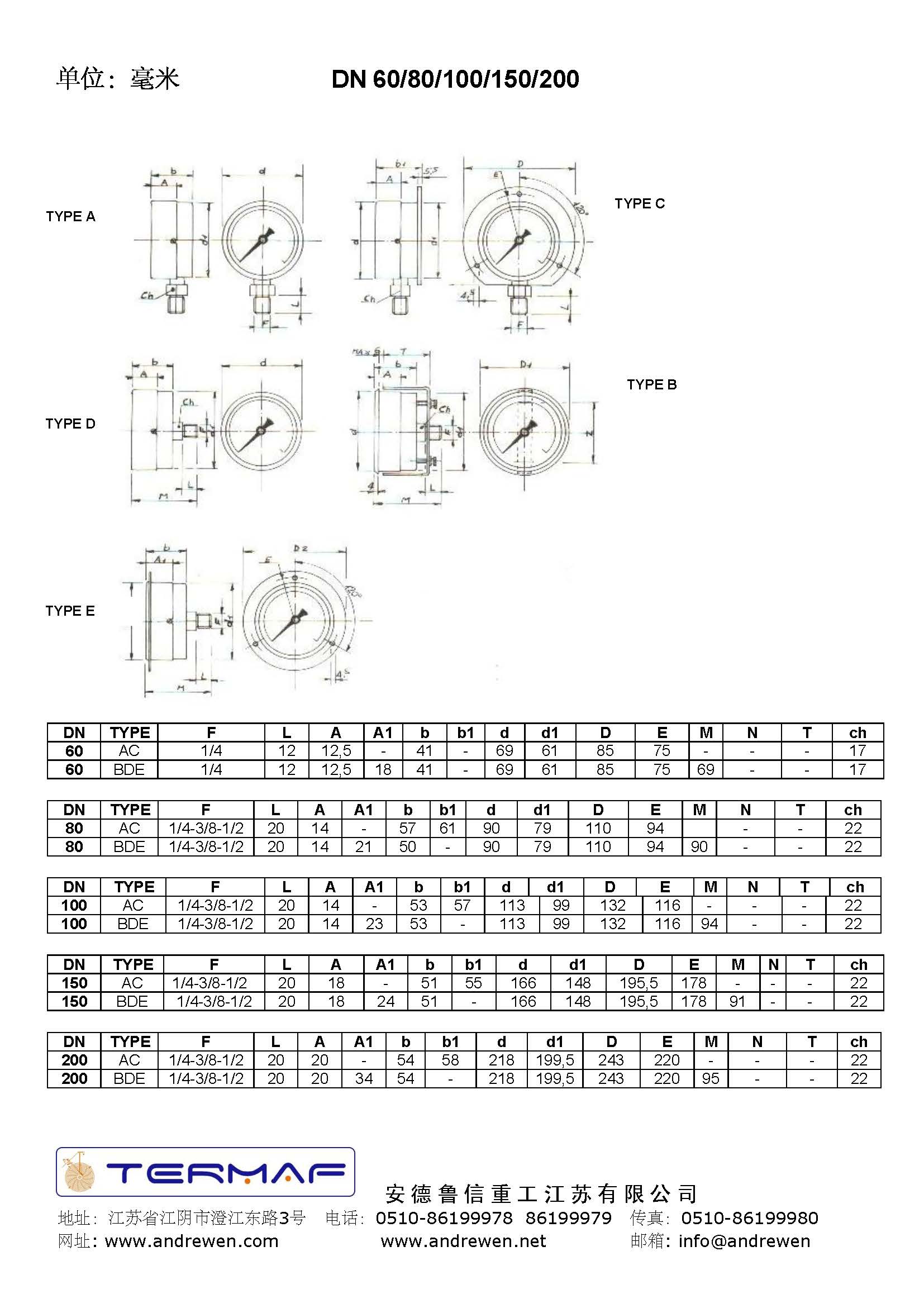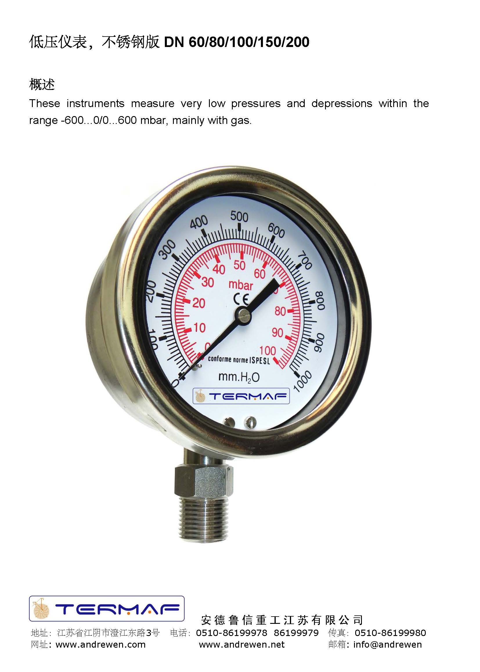 低壓儀表,不銹鋼版 DN 60/80/100/150/200-意大利TERMAF